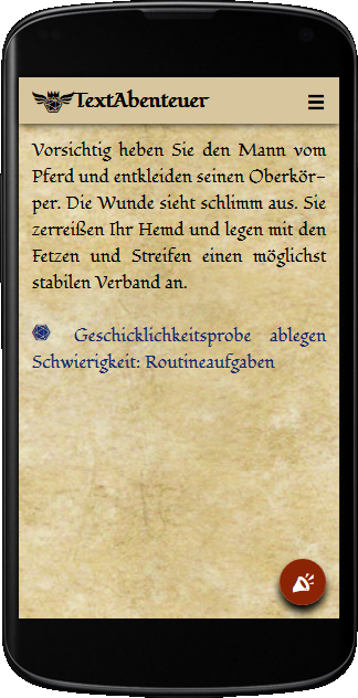 A modern interpretation of the classic gamebook approach: Instead of presenting the reader with a linear story, he/she makes choices to influence the progression and ending of the story.